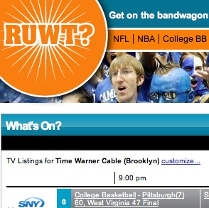 Τι παίρνει κανείς αν ανακατέψει TV sports games, search engines, personalized listings, ratings και ειδοποιήσεις μέσω SMS? Το RUWT (συντομογραφία για το Are You Watching This) που υπόσχεται να ειδοποιεί τα μέλη του για σημαντικά παιχνίδια και στιγμές που αξίζει κανείς να δεί..